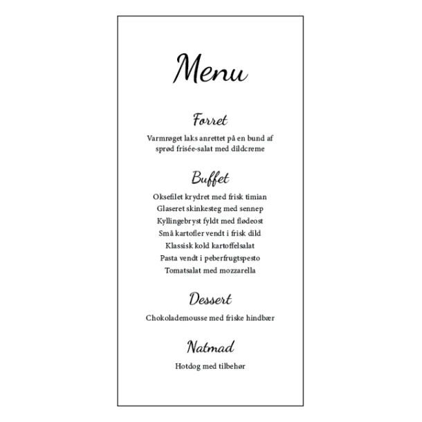 Elegant konfirmationsmenu til buffet – design 2